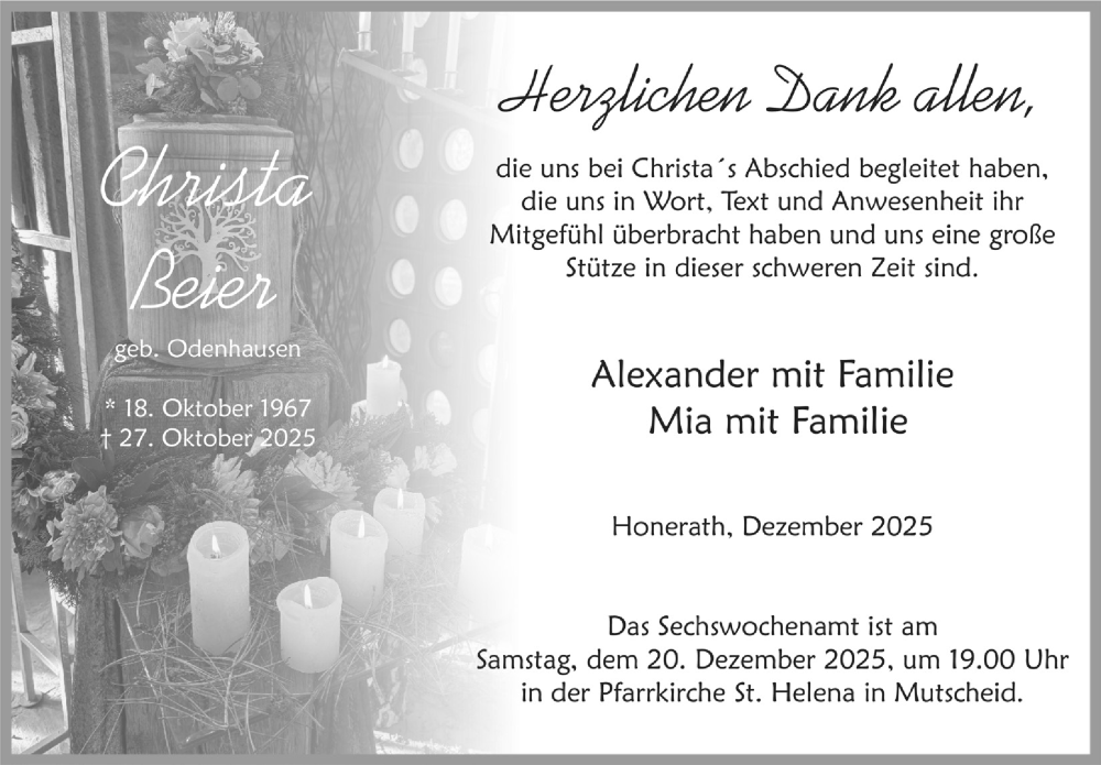 Hier finden Sie alle Traueranzeigen aus der Zeitung, die bisher für Christa Beier erschienen sind. Weitere Traueranzeigen, die in der Zeitung erscheinen, werden hier ebenfalls aufgelistet