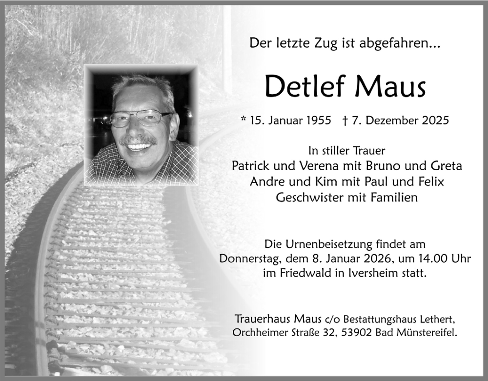 Hier finden Sie alle Traueranzeigen aus der Zeitung, die bisher für Detlef Maus erschienen sind. Weitere Traueranzeigen, die in der Zeitung erscheinen, werden hier ebenfalls aufgelistet