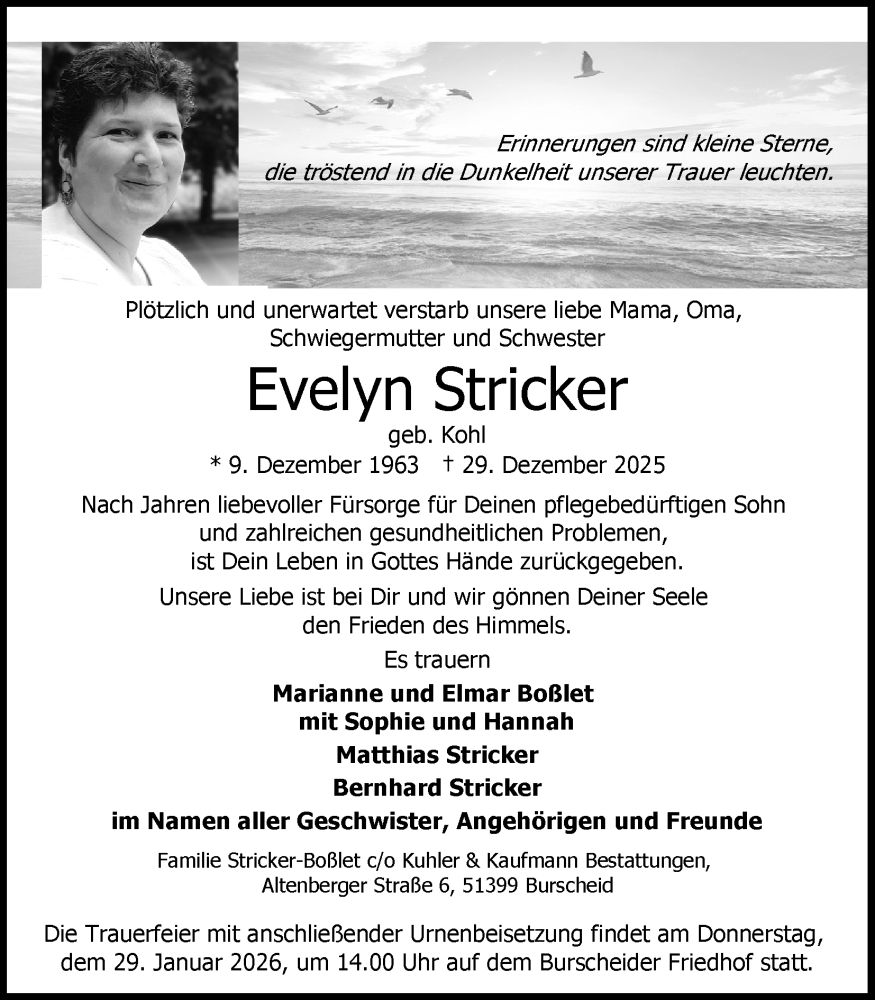 Hier finden Sie alle Traueranzeigen aus der Zeitung, die bisher für Evelyn Stricker erschienen sind. Weitere Traueranzeigen, die in der Zeitung erscheinen, werden hier ebenfalls aufgelistet