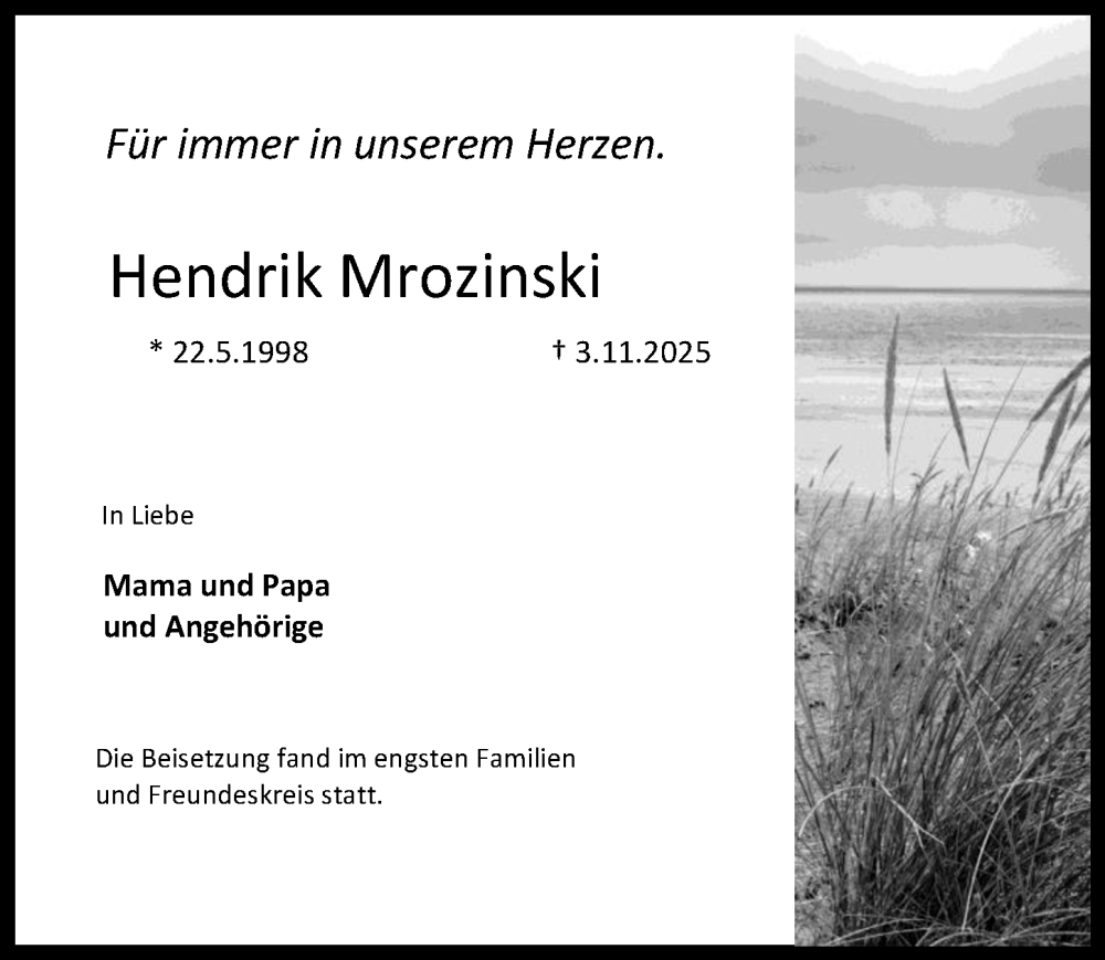 Hier finden Sie alle Traueranzeigen aus der Zeitung, die bisher für Hendrik Mrozinski erschienen sind. Weitere Traueranzeigen, die in der Zeitung erscheinen, werden hier ebenfalls aufgelistet