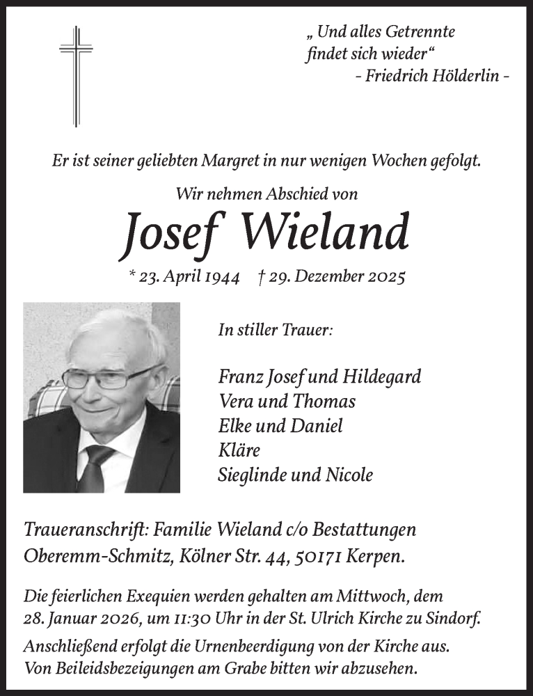 Hier finden Sie alle Traueranzeigen aus der Zeitung, die bisher für Josef Wieland erschienen sind. Weitere Traueranzeigen, die in der Zeitung erscheinen, werden hier ebenfalls aufgelistet