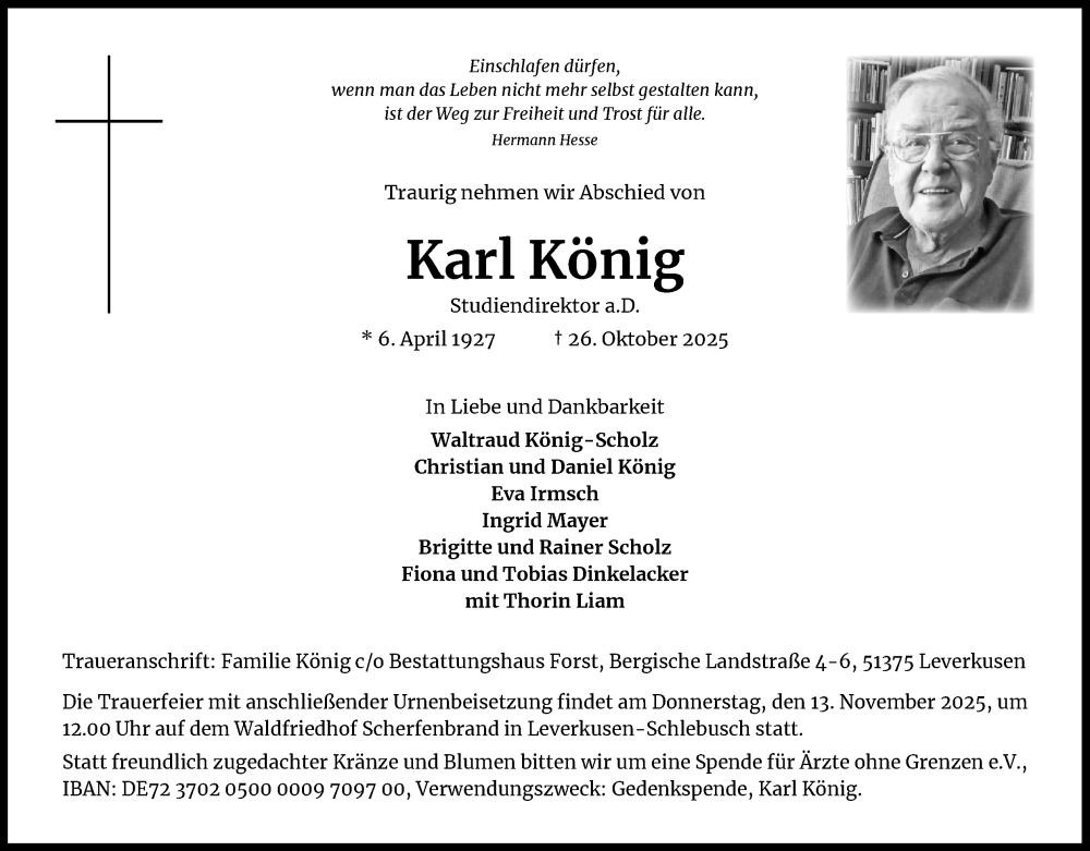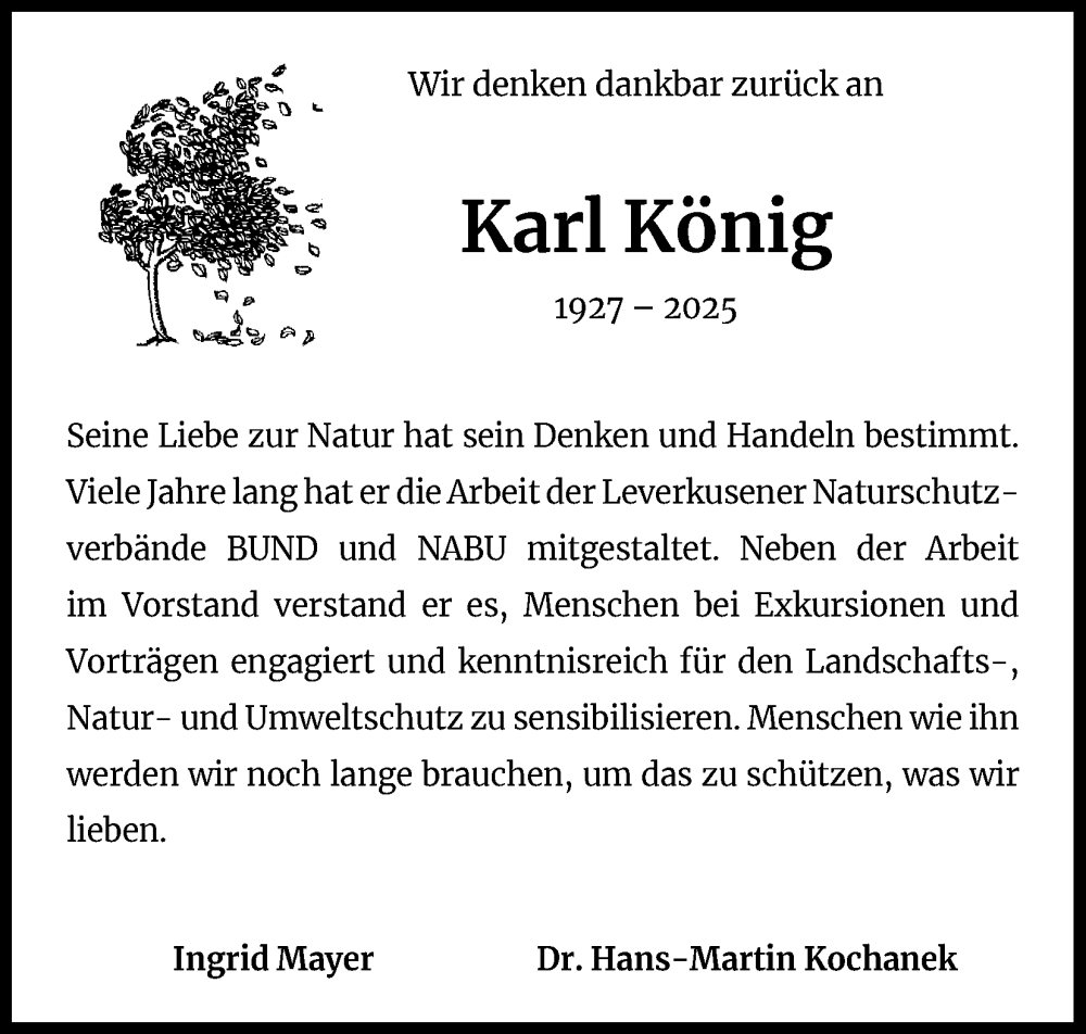 Hier finden Sie alle Traueranzeigen aus der Zeitung, die bisher für Karl König erschienen sind. Weitere Traueranzeigen, die in der Zeitung erscheinen, werden hier ebenfalls aufgelistet