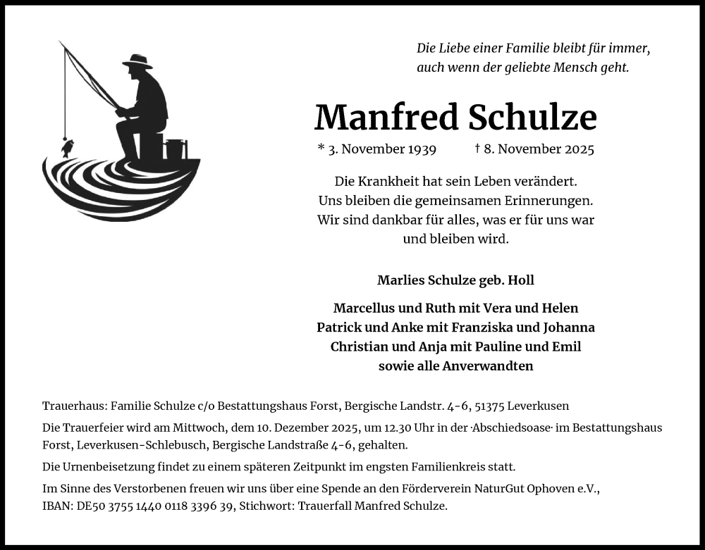Hier finden Sie alle Traueranzeigen aus der Zeitung, die bisher für Manfred Schulze erschienen sind. Weitere Traueranzeigen, die in der Zeitung erscheinen, werden hier ebenfalls aufgelistet