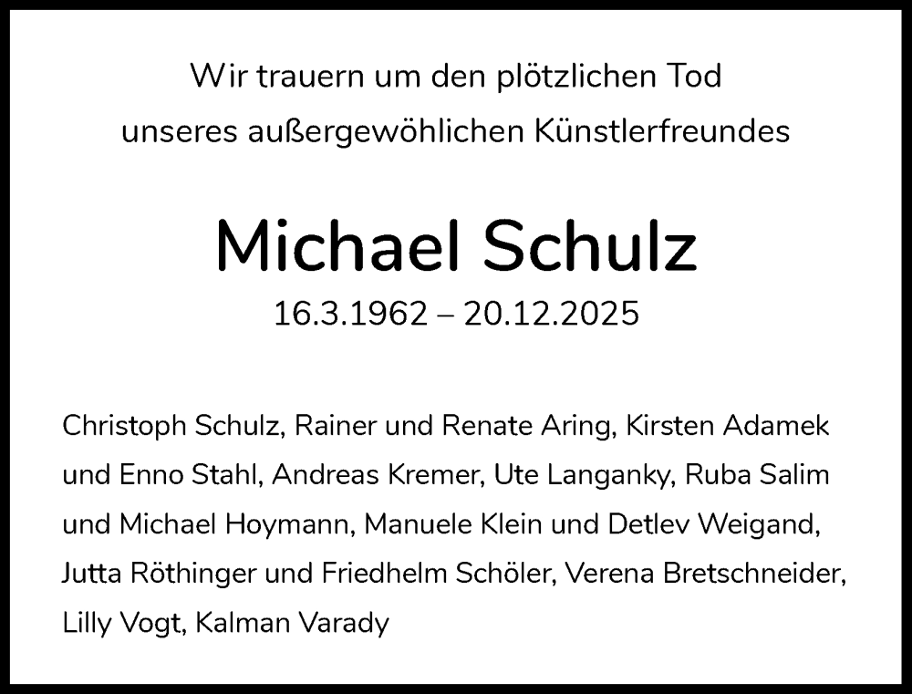 Hier finden Sie alle Traueranzeigen aus der Zeitung, die bisher für Michael Schulz erschienen sind. Weitere Traueranzeigen, die in der Zeitung erscheinen, werden hier ebenfalls aufgelistet