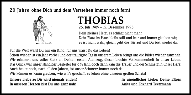 Hier finden Sie alle Traueranzeigen aus der Zeitung, die bisher für Thobias Teetzmann erschienen sind. Weitere Traueranzeigen, die in der Zeitung erscheinen, werden hier ebenfalls aufgelistet